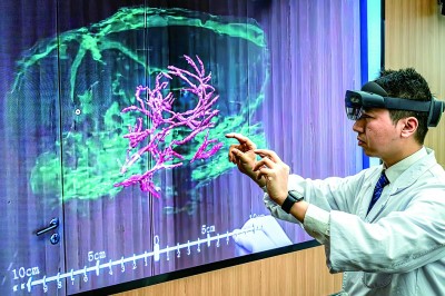 科研人員通過微米級腦機(jī)接口混合現(xiàn)實(shí),精準(zhǔn)呈現(xiàn)腦機(jī)接口與大鼠大腦主要血管和腦組織的空間位置關(guān)系。新華社發(fā)