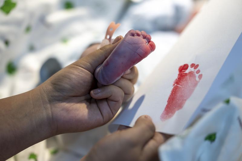 1月1日,西藏自治區(qū)人民醫(yī)院婦產(chǎn)科助產(chǎn)醫(yī)生次拉為新生兒印腳印。