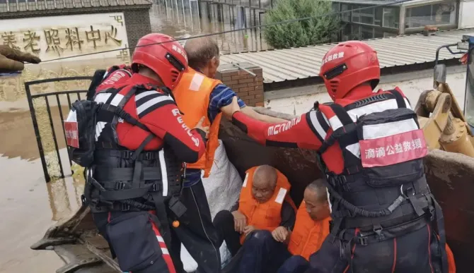 ▲7月,“滴滴應(yīng)急救援項目”隊員馳援北京密云,轉(zhuǎn)移殘疾及患病的老人