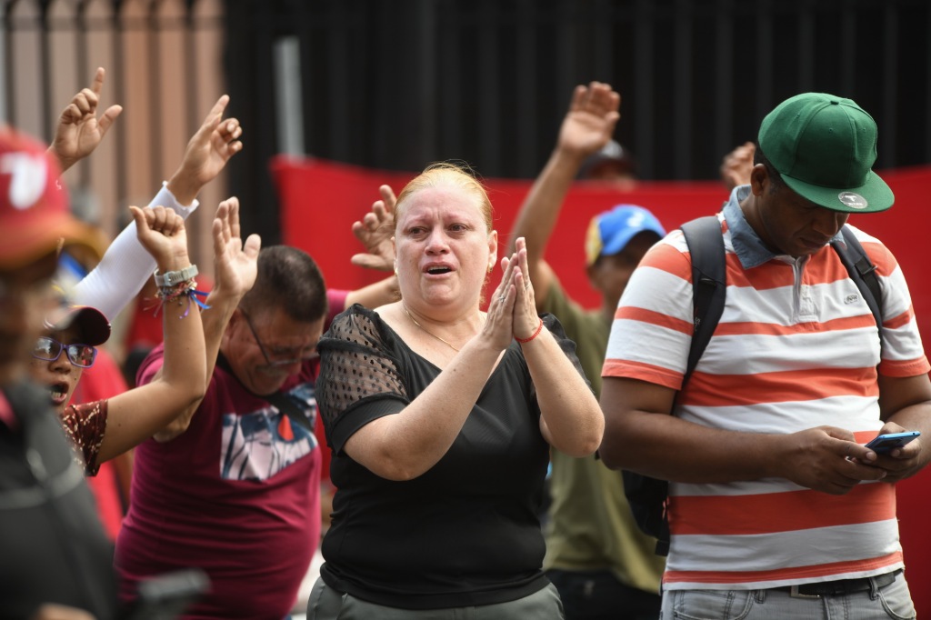 1月3日,在委內(nèi)瑞拉首都加拉加斯,人們在米拉弗洛雷斯宮附近集會。