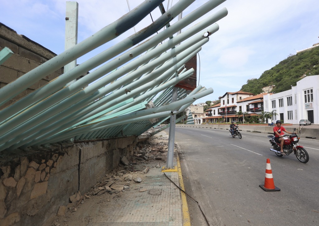這是1月3日在委內(nèi)瑞拉拉瓜伊拉港拍攝的空襲造成的建筑殘骸。