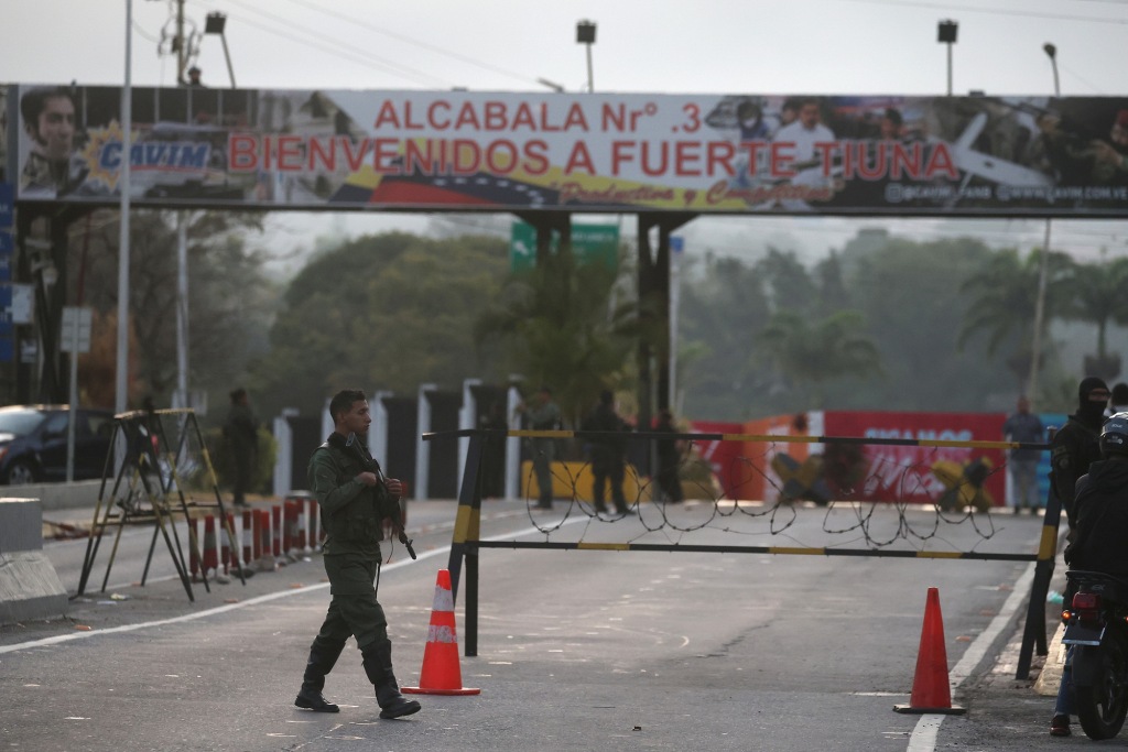 1月3日,委內(nèi)瑞拉加拉加斯,武裝人員在蒂烏納堡附近的一個檢查站執(zhí)勤。