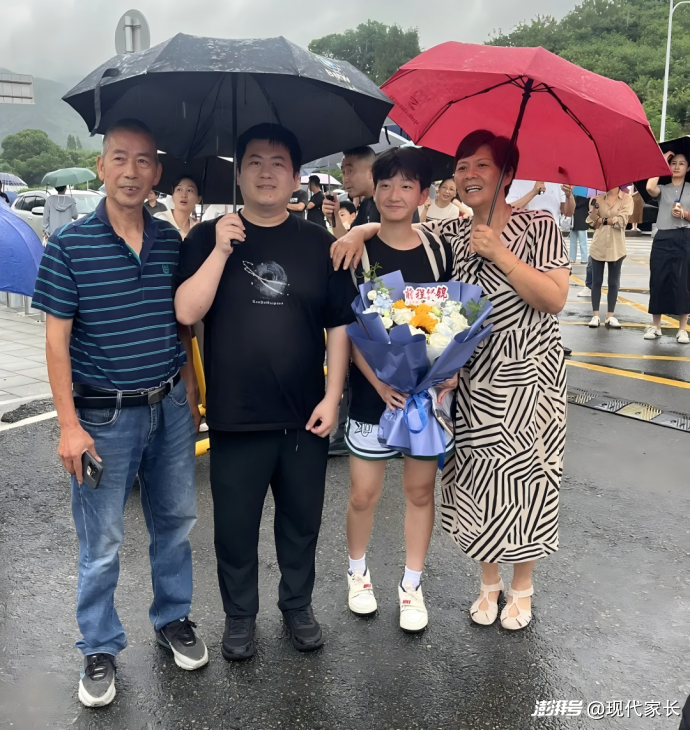 高考結(jié)束當(dāng)天,小嚴(yán)和戴斌及戴斌父母合影