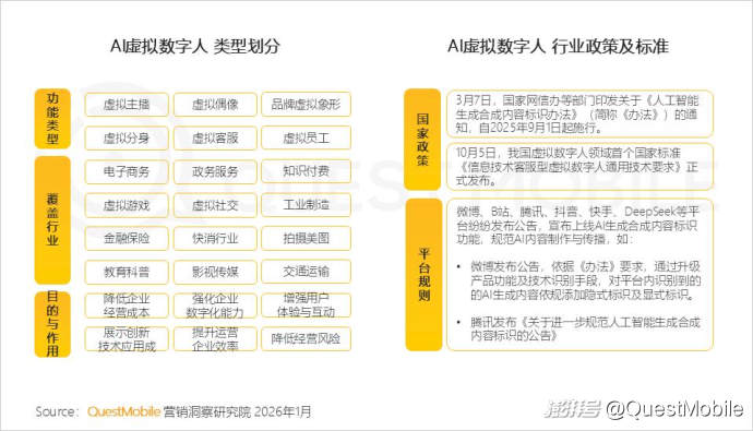 3.2 技術(shù)驅(qū)動(dòng)AI虛擬數(shù)字人從“中之人”傳統(tǒng)模型演進(jìn)到AI原生數(shù)字生命體,其應(yīng)用行業(yè)越發(fā)廣泛;同時(shí),AI標(biāo)識(shí)制度促使AI產(chǎn)業(yè)發(fā)展從“野蠻生長(zhǎng)”轉(zhuǎn)向“規(guī)范創(chuàng)新”