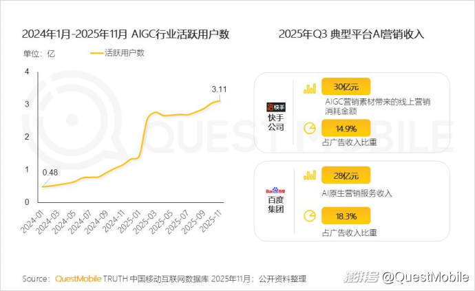 虛擬偶像方面,2025年1-11月份,言和、初音未來、洛天依牢牢占據(jù)內(nèi)容互動(dòng)量前三的位置;智能營(yíng)銷方面,從單點(diǎn)到跨OS、跨屏,基于場(chǎng)景的千人千面觸達(dá)正在改變營(yíng)銷模式;用戶運(yùn)營(yíng)方面,基于對(duì)用戶即時(shí)意圖和情緒的理解,生成跨場(chǎng)景的營(yíng)銷內(nèi)容體系,已經(jīng)成為可能,人群標(biāo)簽化運(yùn)營(yíng)體系正在被生成式用戶運(yùn)營(yíng)體系取代!