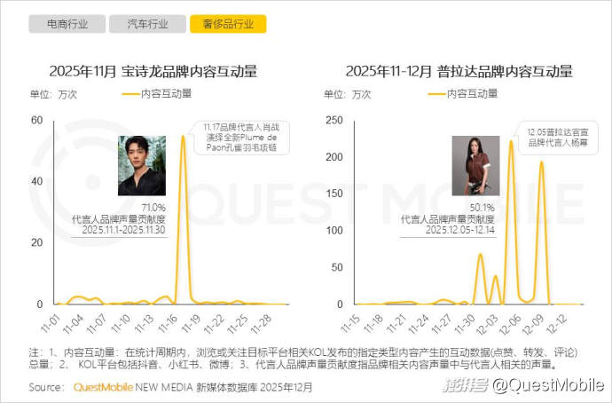 2.5 奢侈品行業(yè)善用社媒宣發(fā)代言人相關(guān)熱點(diǎn)話題,如微博平臺(tái)成為“品牌+代言人+粉絲”傳播互動(dòng)流量的起點(diǎn)