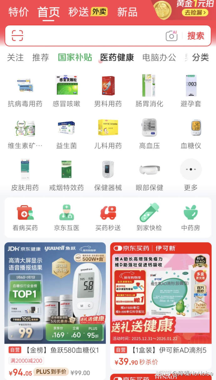 ▲醫(yī)療健康被放在京東App首頁的顯要位置