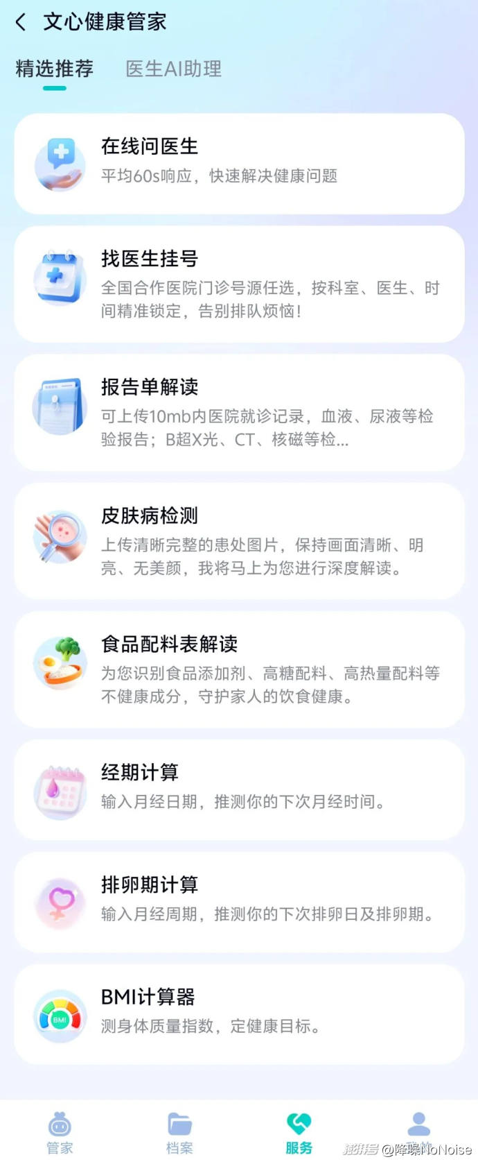 這一輪AI醫(yī)療重啟,百度的姿態(tài)明顯更為克制。 新推出并反復(fù)迭代的AI服務(wù)產(chǎn)品「文心健康管家」,被嵌入百度App的搜索體系之中,強(qiáng)調(diào)專業(yè)醫(yī)學(xué)能力與大模型結(jié)合,其定位更像搜索體驗的延展,而非獨立的健康入口。