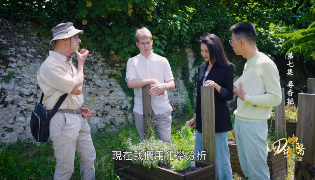 紀(jì)錄片《四海中醫(yī)》第一季法國站,《尋香記》嘉賓交流植物藥性 。Joel Mikael Walker(中),中文名“無名”,德國籍,河南中醫(yī)藥大學(xué)針灸專業(yè)碩士研究生、短視頻博主。