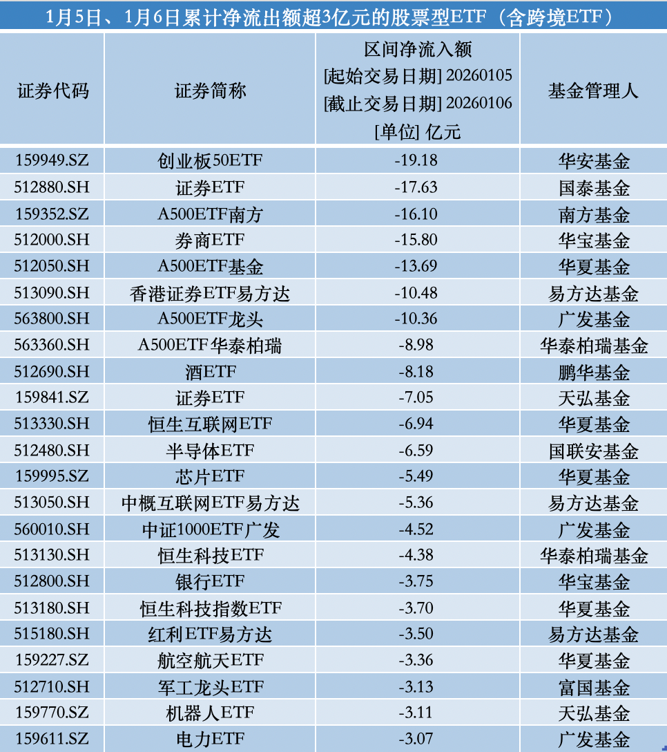 2026年前兩個交易日,A股漲勢如虹,股票型ETF資金流向呈現(xiàn)“先出后進(jìn)”格局。