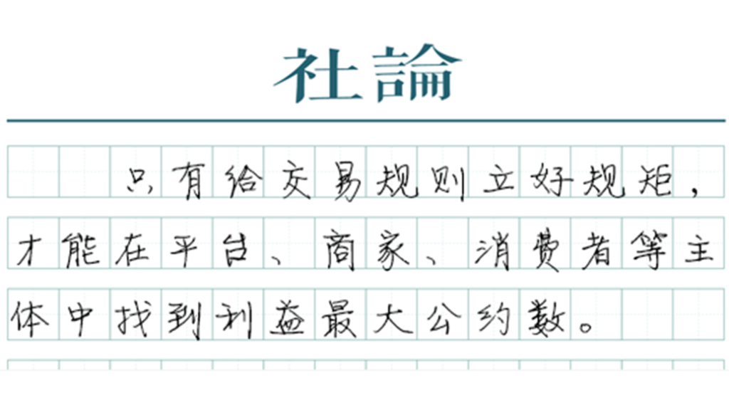 平臺規(guī)則是否公正、合理、透明,既直接關乎平臺內(nèi)經(jīng)營者和用戶的權益,也決定著平臺經(jīng)濟能否健康、長遠發(fā)展。只有給平臺規(guī)則立好規(guī)矩,才能在平臺、商家、消費者等主體中找到利益最大公約數(shù)。期待各平臺都能認真落實《辦法》,構建更公平也更健康的網(wǎng)絡交易生態(tài)。