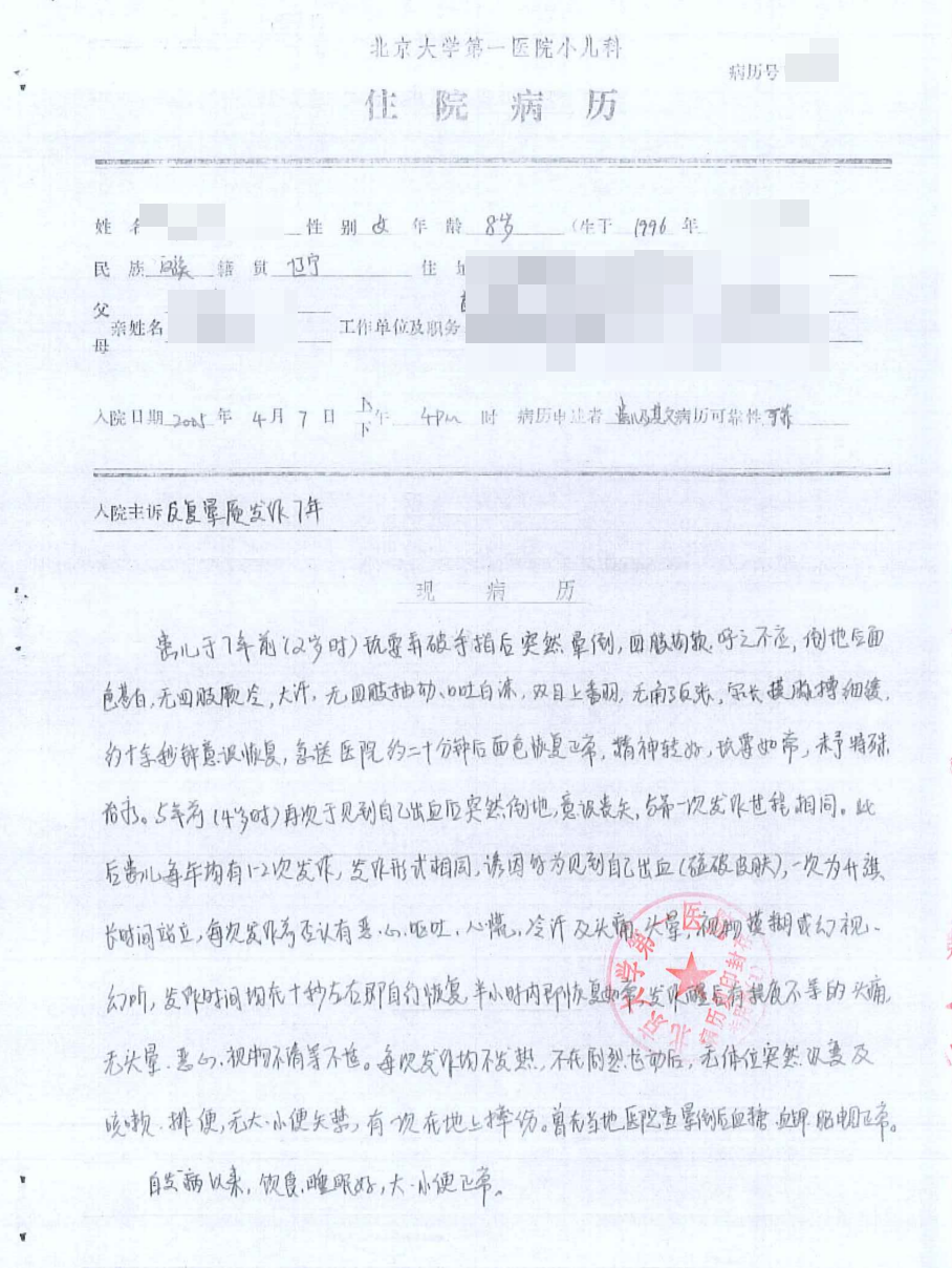 錢多多爸爸著急了,帶著她去了本省一家很大的醫(yī)院。醫(yī)生也沒做什么檢查,就是問了一些過往的情況,就在病歷上寫下了“疑似癲癇(?)”幾個字,給錢多多開了些中成藥,錢多多爸爸沒信,藥也沒讓孩子吃,打算帶她去北京就醫(yī)。