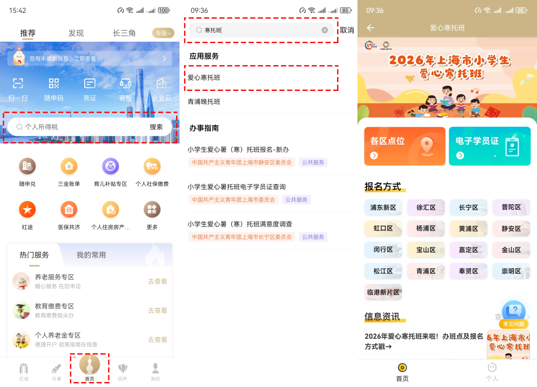 待愛(ài)心寒托班報(bào)名通道正式開(kāi)啟后,可登錄“隨申辦市民云”APP→進(jìn)入“區(qū)域”頻道→點(diǎn)擊“浦東新區(qū)”,進(jìn)入浦東新區(qū)區(qū)旗艦店主頁(yè)。找到寒托班服務(wù)并點(diǎn)擊進(jìn)入后,即可在線申請(qǐng)報(bào)名。