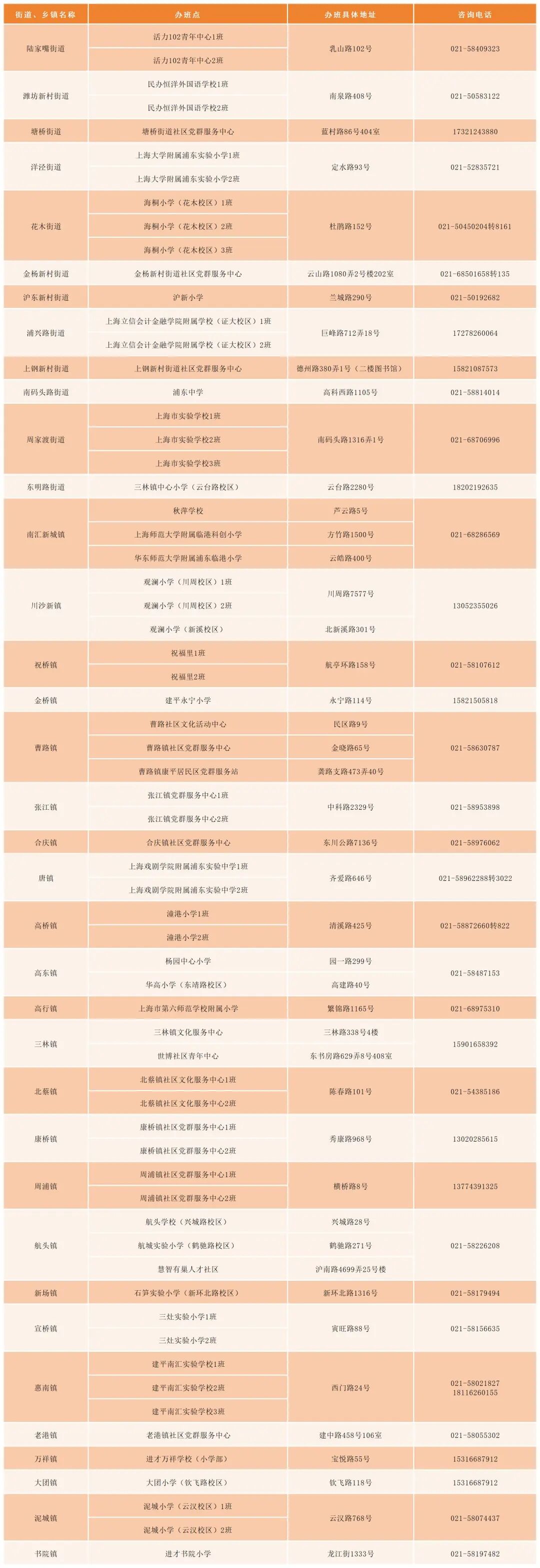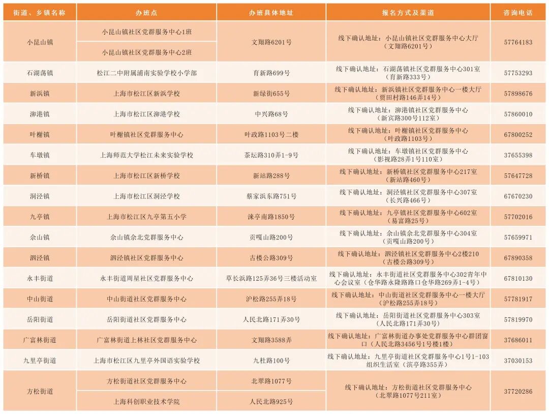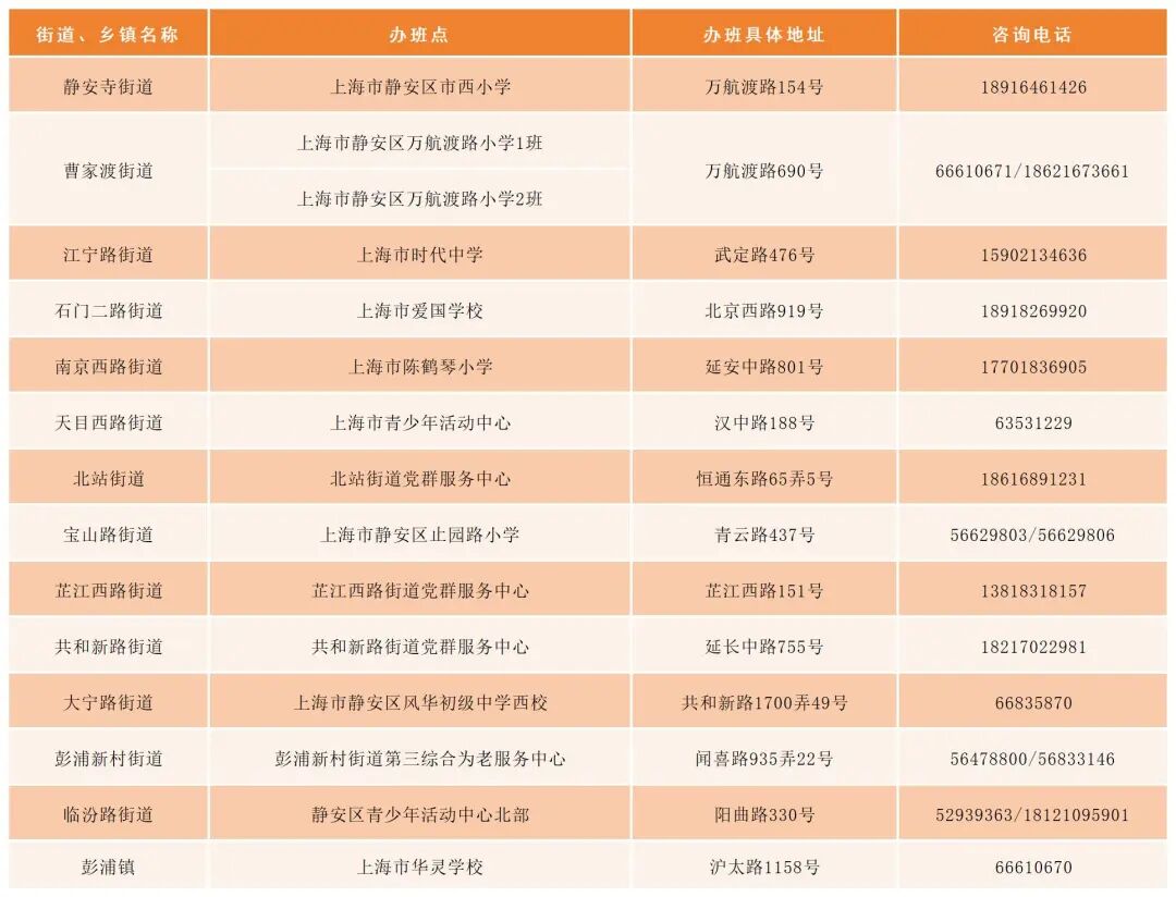全市各辦班點(diǎn)位置及報(bào)名方式