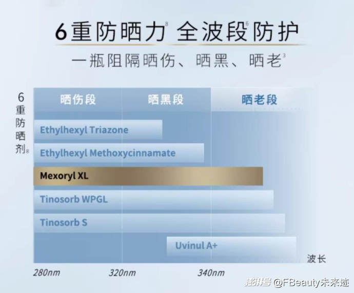 例如,巴黎歐萊雅會在麥色濾成分宣傳上將不同波段的光線分為曬黑段、曬傷段、曬老段。在小金管和小銀管防曬產(chǎn)品的升級中,復配余甘子果提取物、腺苷等抗老成分,促生膠原,改善曬老肌膚紋路。