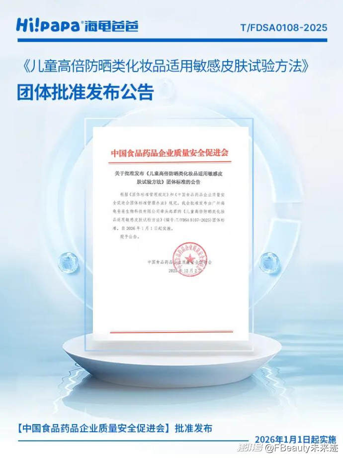 例如,2025年海龜爸爸牽頭制定、發(fā)布國內(nèi)首個“防曬清水可洗”團體標準和《兒童高倍防曬化妝品適用敏感皮膚試驗方法》團體標準。其中,“防曬清水可洗”團體標準是中國首個聚焦于防曬產(chǎn)品使用清洗方法便捷性和安全性而制定的團體標準。