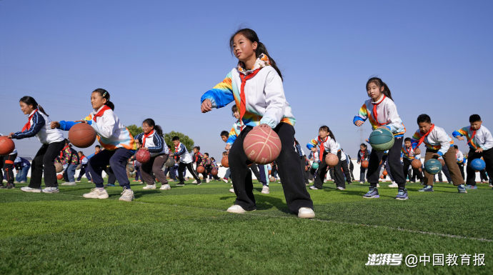 江蘇省海安市李堡鎮(zhèn)曹園小學(xué)的學(xué)生在大課間進(jìn)行籃球運(yùn)動(dòng)。周強(qiáng) 攝