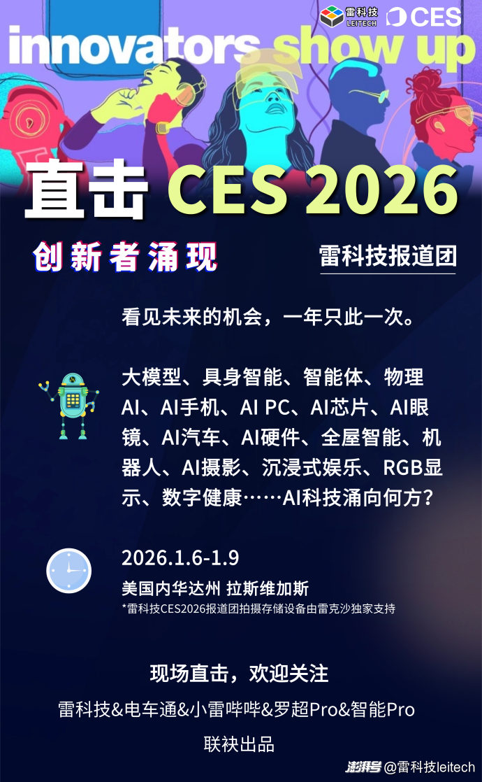 全球最大科技展會(huì),在這里洞見(jiàn)科技產(chǎn)業(yè)潮水的方向。雷科技史上最大規(guī)模CES報(bào)道團(tuán),正在美國(guó)·拉斯維加斯進(jìn)行一線、專業(yè)和立體報(bào)道,深度觀察、新品資訊、探展Vlog、高端專訪、技術(shù)解析、產(chǎn)品評(píng)測(cè)全覆蓋,重點(diǎn)聚焦海信、TCL、TCL華星、追覓、高通、英偉達(dá)、MOVA、科沃斯、釘釘、萬(wàn)得廚、米家凈煙機(jī)、Broadlink、未嵐大陸、阿里云、聯(lián)想、雷克沙、圖拉斯、浩瀚、NAVEE坦途、長(zhǎng)城汽車、出門問(wèn)問(wèn)、九號(hào)出行、蔚來(lái)汽車等中國(guó)創(chuàng)新品牌在世界舞臺(tái)的華麗表現(xiàn),可全網(wǎng)搜索“雷科技CES”查看!