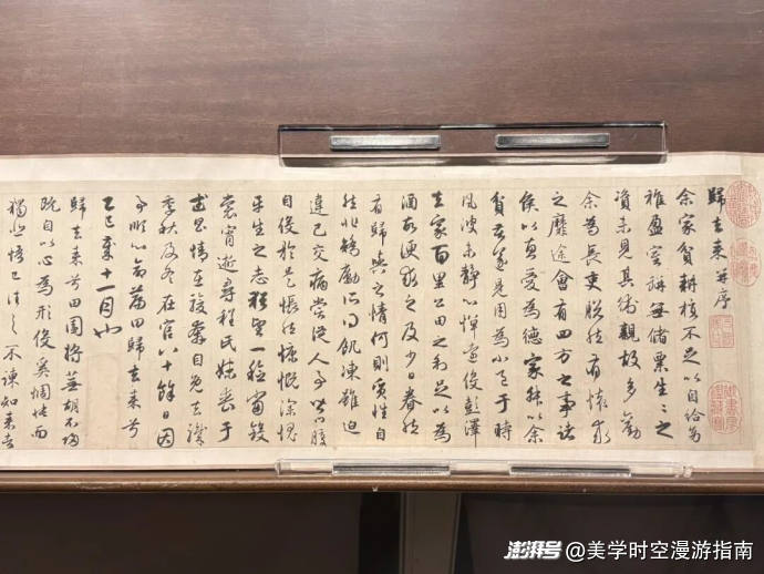 陶淵明的《歸去來(lái)兮辭》是一首被很多人、很多年都反復(fù)講述的詩(shī),而趙孟頫的書(shū)寫(xiě)超越了書(shū)法的范疇,成就了這卷獨(dú)一無(wú)二的藝術(shù)品。