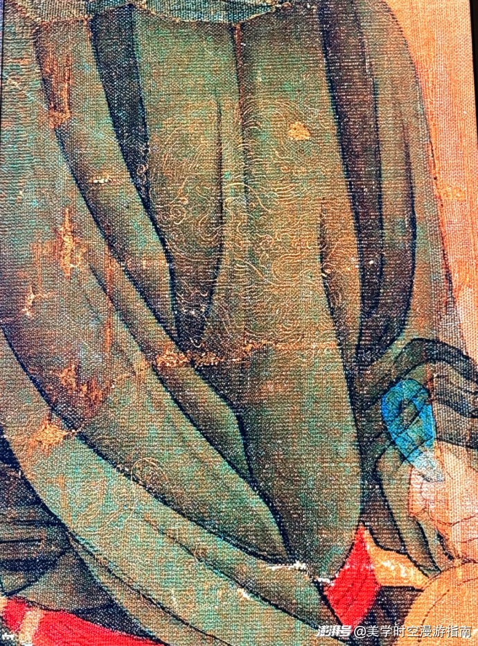 上圖為現(xiàn)場(chǎng)拍攝的電子版顯示屏,為畫(huà)中第一人的服裝細(xì)節(jié)。