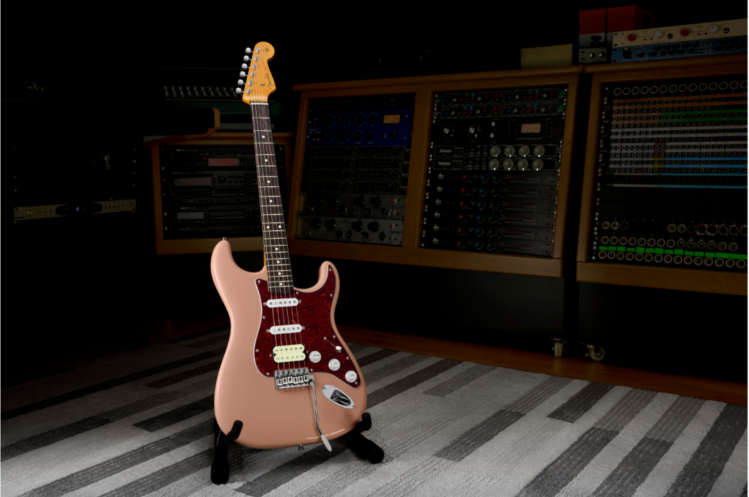 他告訴我,最開始,熟悉他的人會覺得他會選擇延續(xù)炫酷的帶金色配飾的黑色吉他外形。畢竟那把由Fender制琴大師Dennis Galuszka制作的60s Stratocaster,陪伴他走過無數(shù)大大小小的舞臺,幾乎成為他的舞臺形象標(biāo)志之一。但是他又一次有了“反骨”,他用了一種偏暗的粉色,做了一款復(fù)古風(fēng)格的吉他。他正考慮在演唱會上用它來演奏。