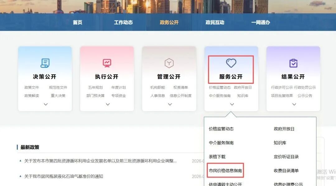 登錄官方門戶網(wǎng)站“上海市發(fā)展和改革委員會”(https://fgw.sh.gov.cn/),點擊“政務(wù)公開-服務(wù)公開-市民價格信息指南”查看全文