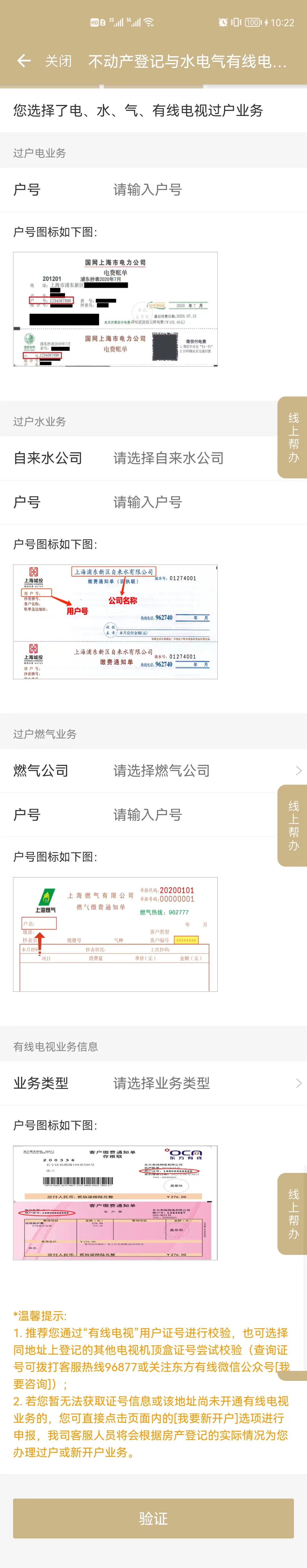 3、填寫過戶信息(水電氣的戶號、有線電視業(yè)務(wù)類型等);