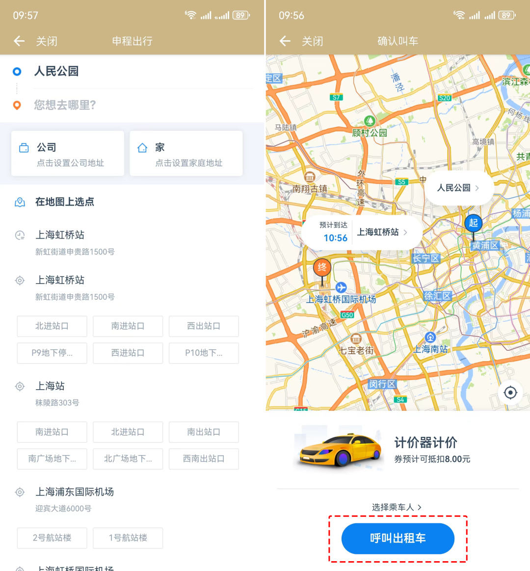 2、輸入出發(fā)點和目的地,點擊“呼叫出租車”即可。