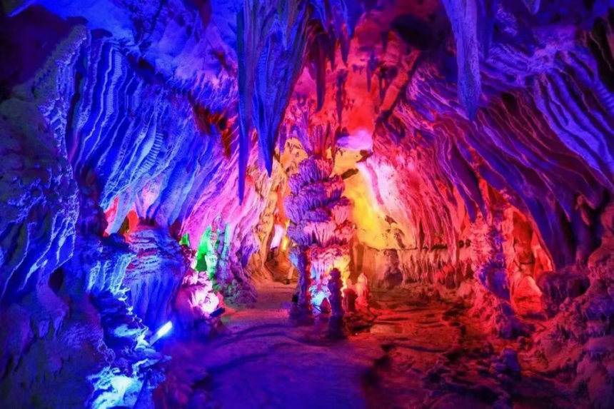 主峰海拔754米的山體如青黛屏障,守護(hù)著億年形成的錦繡宮溶洞,18℃的恒溫環(huán)境讓四季在這里都有溫潤(rùn)詩(shī)意,走進(jìn)溶洞,鐘乳石在燈光映照下幻化出萬(wàn)千姿態(tài),仿佛大自然用時(shí)光雕琢的藝術(shù)品,在黑暗中靜靜訴說(shuō)地質(zhì)變遷的故事。