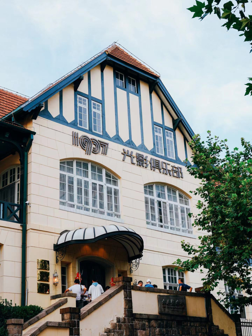 藏在老城深處的1907光影俱樂(lè)部,是中國(guó)現(xiàn)存最早的影院之一。磚紅色外墻與曲線浮雕洋溢著新藝術(shù)運(yùn)動(dòng)的風(fēng)情,木質(zhì)旋轉(zhuǎn)樓梯與彩色玻璃穹頂,仍保留著百年前的奢華光影,推門而入,仿佛穿越回百年前的光影歲月。