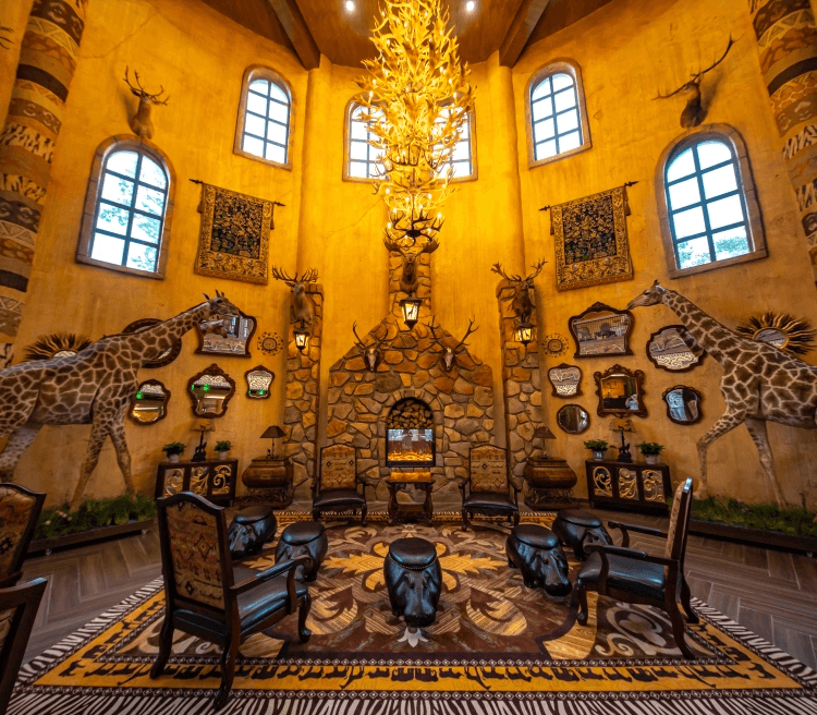 白天游玩不盡興,可以入住歐樂(lè)堡長(zhǎng)頸鹿莊園,讓美好的一天從呆萌的長(zhǎng)頸鹿輕啄玻璃窗的叫早開(kāi)始。推開(kāi)窗便是非洲草原的詩(shī)意,在晨光中與優(yōu)雅長(zhǎng)頸鹿共進(jìn)早餐,在樹(shù)影婆娑間邂逅斑馬悠閑漫步,這份奇妙體驗(yàn),定會(huì)成為難忘的回憶。