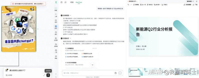 我實際體驗了一番,發(fā)現(xiàn)Genflow3.0在智能PPT、文檔生成等核心辦公場景中有不錯表現(xiàn),不過在類Chatbot對話、多模態(tài)生成效率等細節(jié)上仍有優(yōu)化空間。