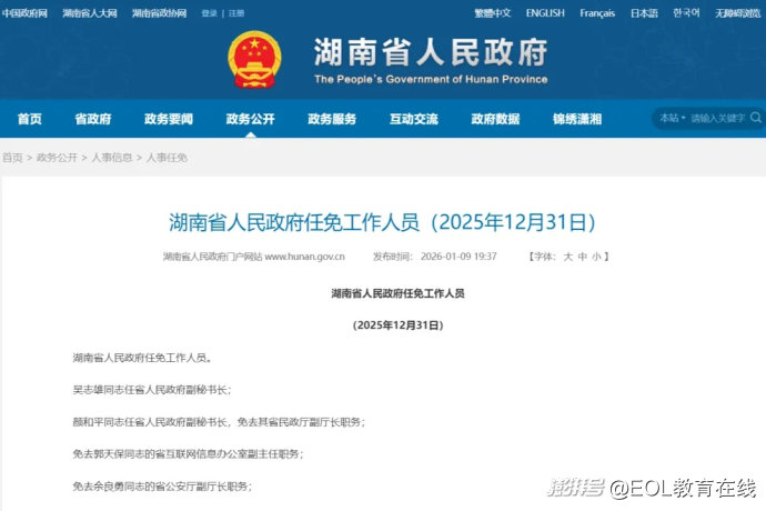 近日,湖南省人民政府網(wǎng)站發(fā)布湖南省人民政府任免工作人員的通知,涉及湖南師范大學(xué)、湘潭大學(xué)、長沙理工大學(xué)、中南林業(yè)科技大學(xué)、南華大學(xué)、湖南工程學(xué)院、邵陽學(xué)院、湖南科技學(xué)院、湖南工學(xué)院、湖南財政經(jīng)濟(jì)學(xué)院、湖南女子學(xué)院等多所高校領(lǐng)導(dǎo)班子調(diào)整。