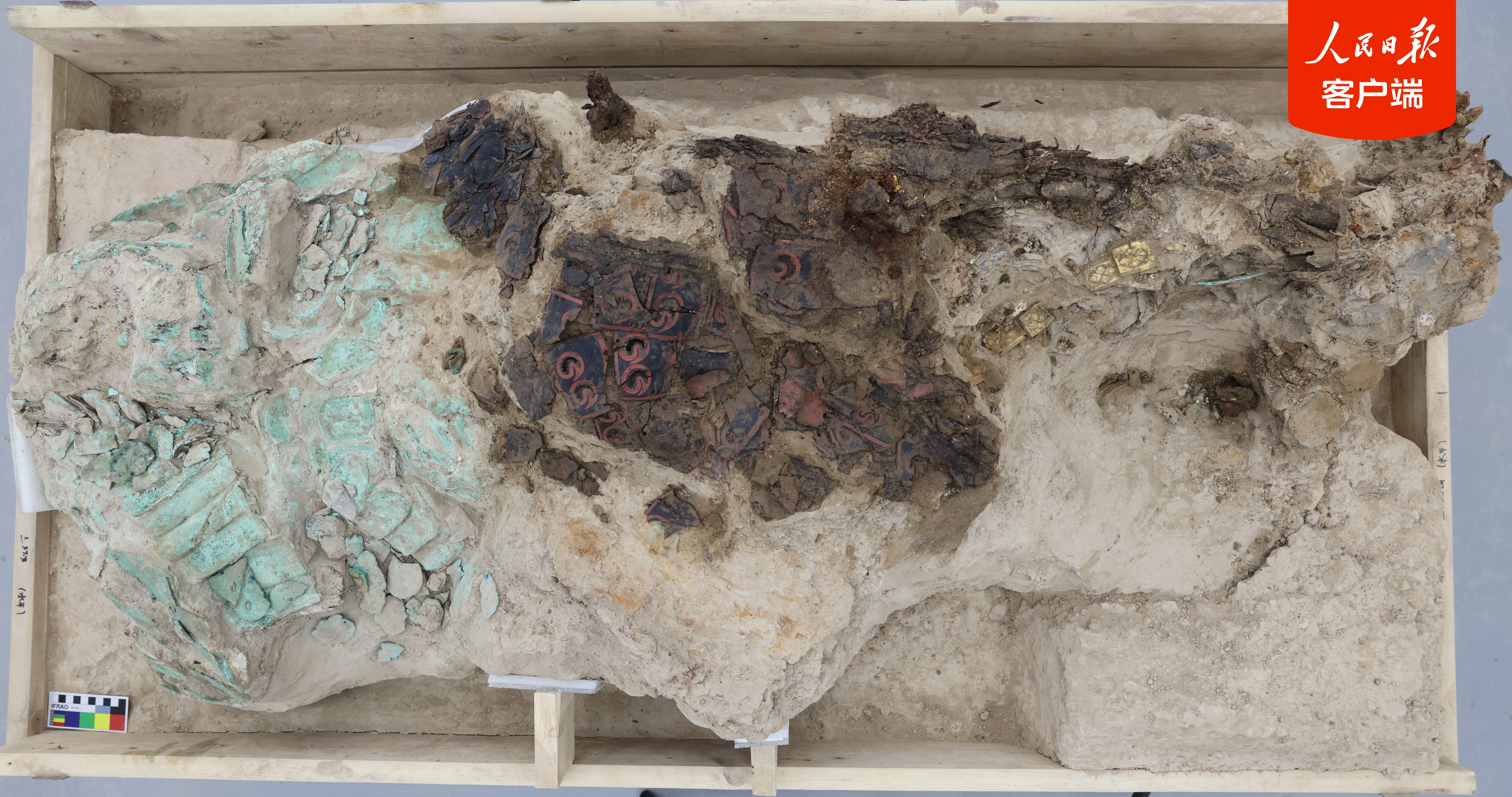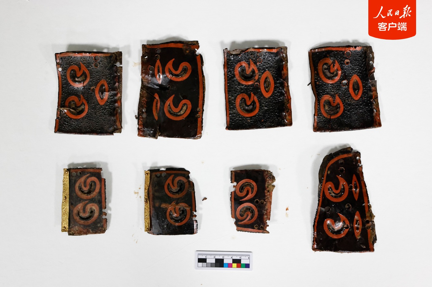 2018血渭一號墓內(nèi)擾亂嚴(yán)重,堆積雜亂,保存狀況較差,研究者通過異地遷移,在實(shí)驗(yàn)室內(nèi)綜合運(yùn)用多學(xué)科手段,完成了田野考古接續(xù)的清理及記錄,有效地保護(hù)、修復(fù)了脆弱質(zhì)文物。其中包括目前國內(nèi)保存最完整的唐代髹漆馬鎧,目前考古出土的唯一唐代鎏金銅甲、髹漆皮盾,研究者在遺存堆積中一層層提取、一片片梳理,分析每一片甲片的特性,找到它的位置,將零散的甲片編綴成部件,讓古老的文物煥發(fā)出新的生機(jī)。