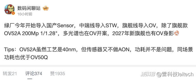 其中 Find 系列等高端產(chǎn)品線(xiàn)將導(dǎo)入豪威,中端產(chǎn)品線(xiàn)則會(huì)導(dǎo)入另一家思特威。除了旗艦款 OV52A(2 億像素、1/1.28 英寸),OPPO 丹霞方案的多光譜傳感器也在豪威開(kāi)案,甚至明年的新旗艦「也有 OV(豪威)身影」。