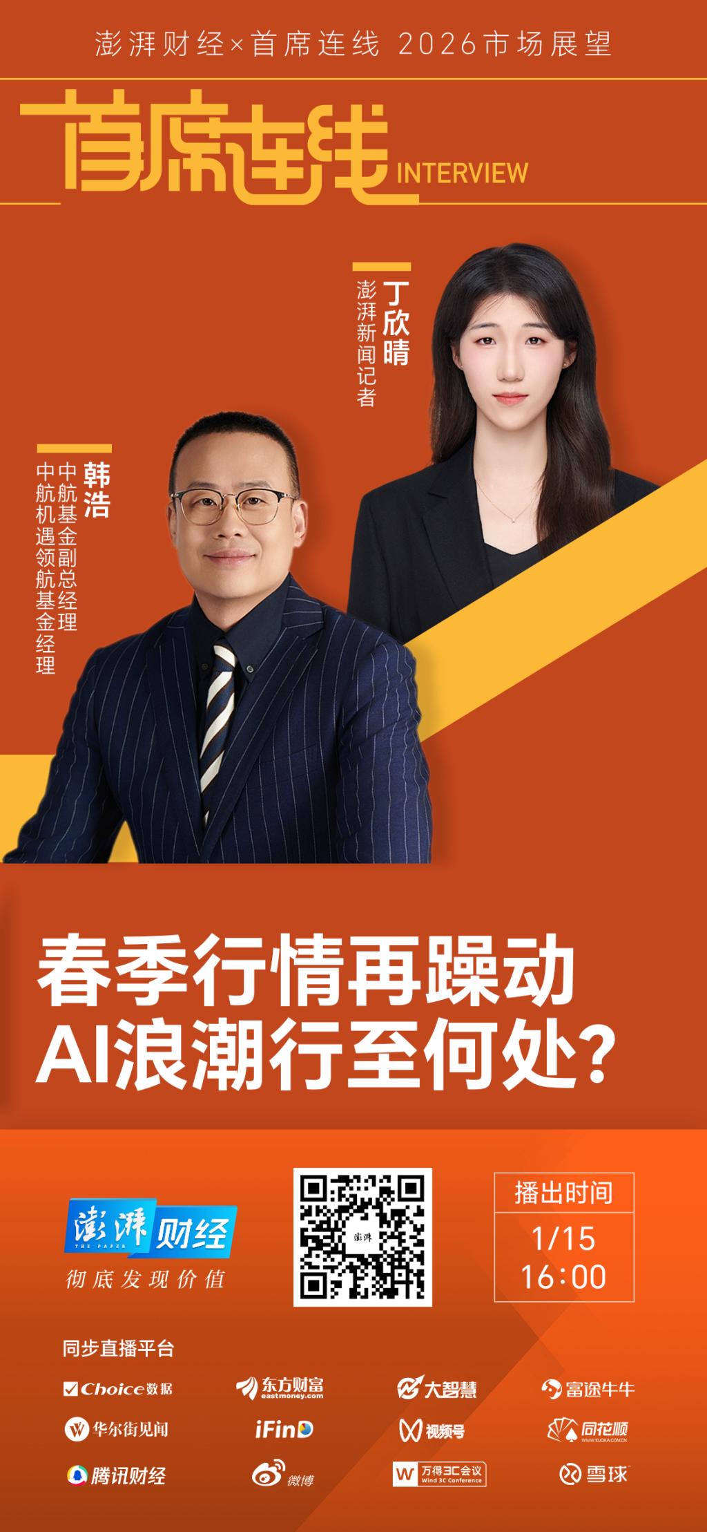 “2026年中國科技龍頭股票將重新獲得全球資產(chǎn)定價(jià),迎來估值修復(fù)與業(yè)績兌現(xiàn)的雙重機(jī)會(huì)?!?月15日,中航基金副總經(jīng)理韓浩做客澎湃新聞“春水向東流——《首席連線》2026年市場展望”專題時(shí)表示。