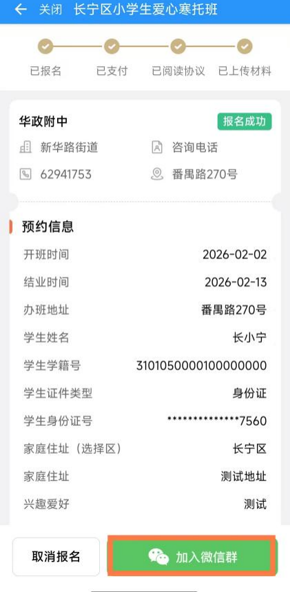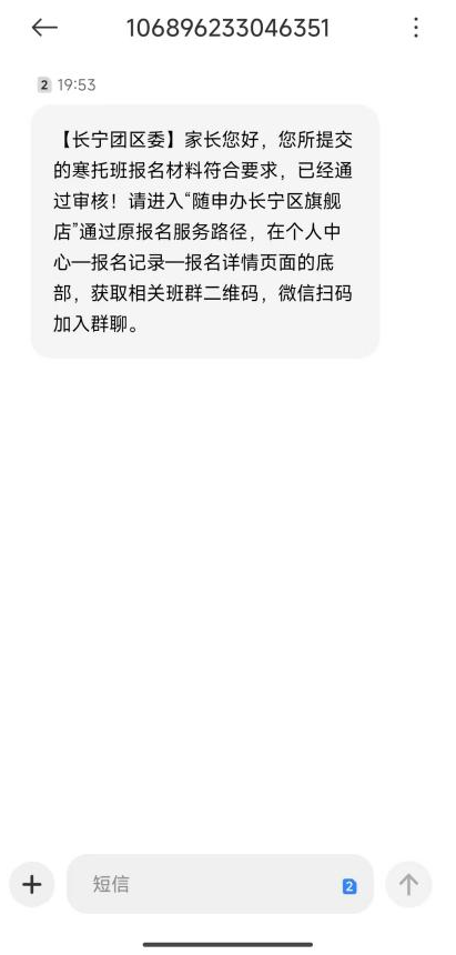 若您提交的材料通過(guò)審核,本次報(bào)名成功。請(qǐng)您在收到手機(jī)短信提示后,查看“報(bào)名記錄”,通過(guò)頁(yè)面底部的“加入微信群”按鈕,獲取相關(guān)班群二維碼,微信加入群聊后,等待后續(xù)寒托班事宜的通知。