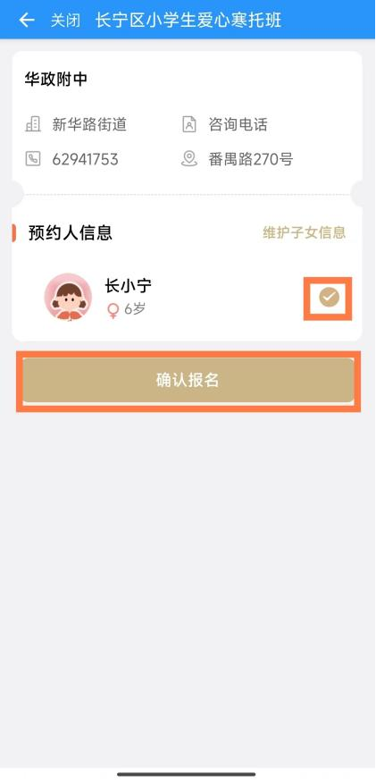 如果學(xué)生信息已經(jīng)預(yù)填寫過(guò),請(qǐng)手動(dòng)選中子女,點(diǎn)擊“確認(rèn)報(bào)名”按鈕進(jìn)行報(bào)名。確認(rèn)報(bào)名成功后,會(huì)出現(xiàn)帶有“去支付”按鈕的提示界面。