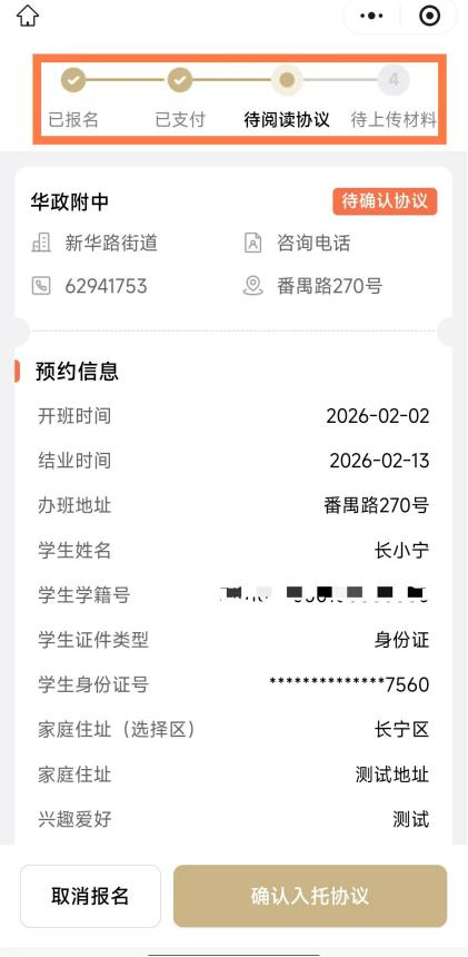 3、在支付完成后,按照頁(yè)面提示,閱讀并確認(rèn)“入托協(xié)議”。