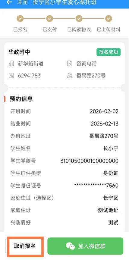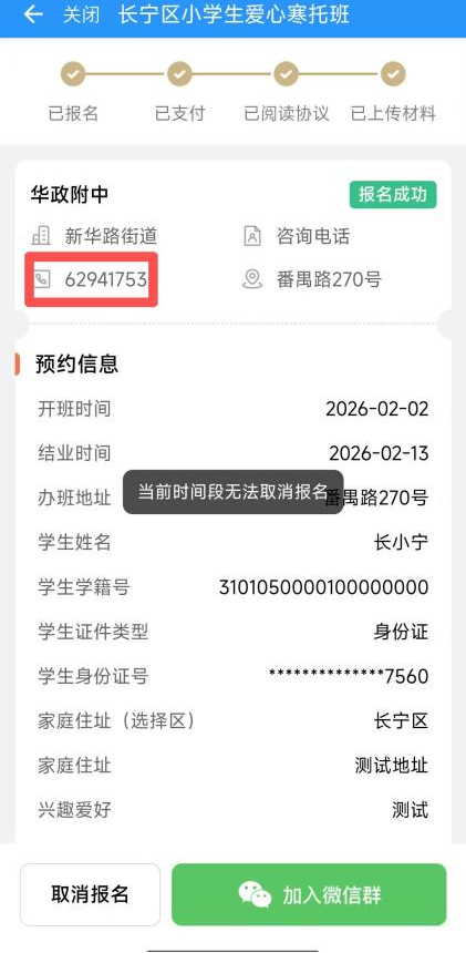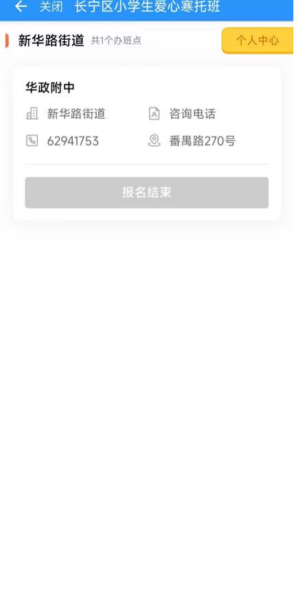 1、本次寒托班每位學(xué)生僅限成功報(bào)名任意一個(gè)街鎮(zhèn)的辦班點(diǎn),若想更換報(bào)名辦班點(diǎn),請(qǐng)?jiān)谡綀?bào)名時(shí)間段內(nèi)先取消當(dāng)前的報(bào)名后,再重新提交報(bào)名。