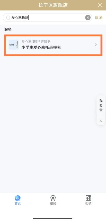 在長(zhǎng)寧區(qū)旗艦店首頁(yè)的輪播圖區(qū)域點(diǎn)擊“青年服務(wù)一站式平臺(tái)”,選擇“小學(xué)生愛(ài)心寒(暑)托班服務(wù)”,找到“小學(xué)生愛(ài)心寒托班報(bào)名”;或者在長(zhǎng)寧區(qū)旗艦店首頁(yè)使用“搜索框”,鍵入“愛(ài)心寒托班”,點(diǎn)擊“小學(xué)生愛(ài)心寒托班報(bào)名”,即可直達(dá)報(bào)名服務(wù)。