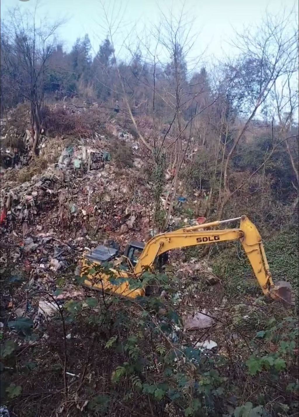16日上午,碗廠鎮(zhèn)政府工作人員回應(yīng)表示,已調(diào)配人員與車輛清理處置。另據(jù)筍子村一名村干部介紹,目前有兩臺挖掘機在現(xiàn)場進(jìn)行清理工作,受場地地勢條件限制,作業(yè)存在一定難度,清理工作預(yù)計今日中午前完成。現(xiàn)場堆放的垃圾,大致相當(dāng)于一臺拖拉機往返運輸五六車的體量。網(wǎng)友提供的另一段視頻證實,16日上午9時左右,已有挖掘機在現(xiàn)場清理垃圾。