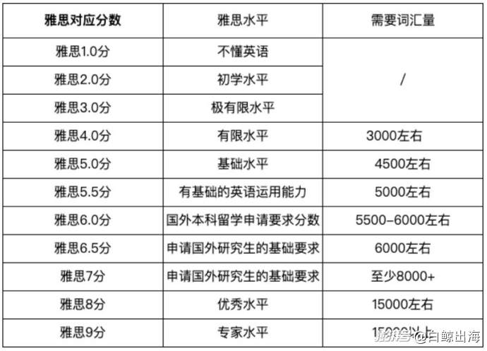 而如果以市面上主流的英語(yǔ)水平測(cè)試對(duì)詞匯水平進(jìn)行量化的話,根據(jù)雅思主辦方 British Council 的數(shù)據(jù),學(xué)術(shù)類雅思 8 分(母語(yǔ)者裸考的平均水平)所要求的詞匯量在 1.5 萬(wàn)左右,基本覆蓋了普通生活以及普通學(xué)術(shù)場(chǎng)景的詞匯要求。