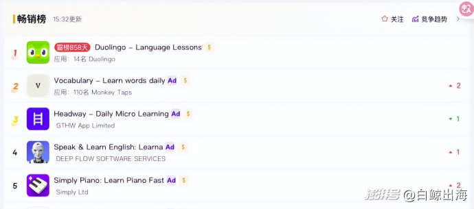 這還沒(méi)過(guò)一周時(shí)間,又有一款面向美國(guó)市場(chǎng)的語(yǔ)言學(xué)習(xí)產(chǎn)品,沖上了美國(guó)下載總榜 Top100。