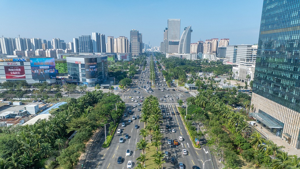 2025年12月17日,海南省??谑袊d大道。(無人機照片) 中新社記者 駱云飛 資料圖