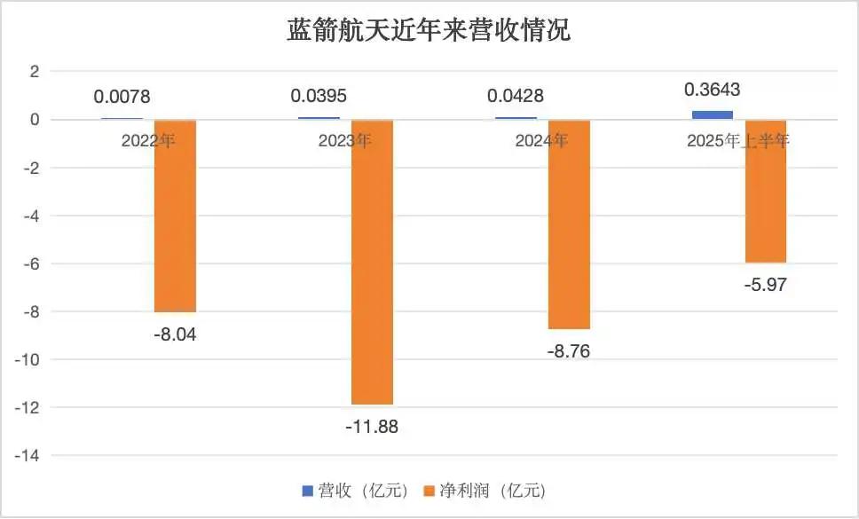 2022年至2024年,藍(lán)箭航天的營收分別為78.29萬元、395.21 萬元、427.83萬元。報(bào)告期內(nèi),藍(lán)箭航天的凈虧損分別為8.04億元、11.88億元、8.76億元。