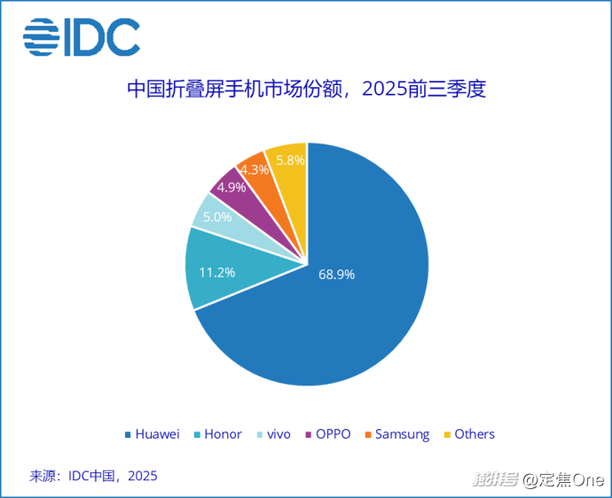 此外,折疊屏也不容忽視。2025年前三季度,華為在國內(nèi)折疊屏手機市場中拿下了69%的市場份額。其他廠商,比如榮耀,份額只有11%,vivo、OPPO等更是只有個位數(shù)。