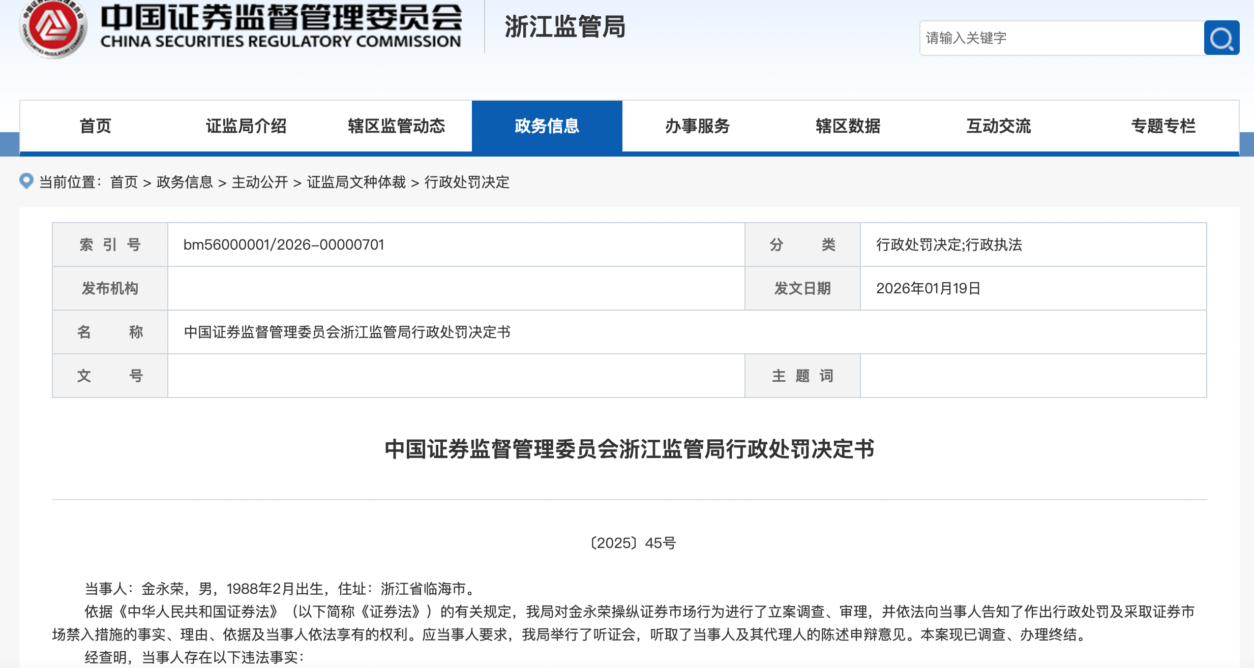 此外,浙江證監(jiān)局還對金永榮采取3年證券市場禁入措施。自宣布決定之日起,在禁入期間內(nèi),其不得直接或以化名、借他人名義在證券交易場所交易上市或掛牌的所有證券。