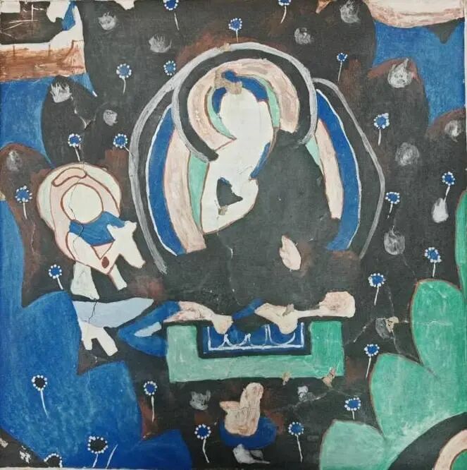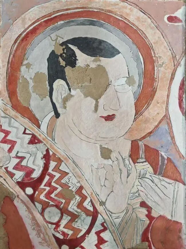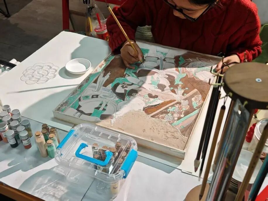 摹寫時,我先對壁畫殘損處的線條、色彩做考據(jù)式梳理,再嘗試用礦物顏料還原石青、石綠的層次,卻在暈染環(huán)節(jié)屢屢碰壁——古壁畫的積色法與現(xiàn)代繪畫的平涂差異極大,反復(fù)調(diào)試才摸到顏料疊壓的節(jié)奏。而對壁畫殘損肌理的復(fù)刻,更讓我理解了“修舊如舊”的傳承原則。