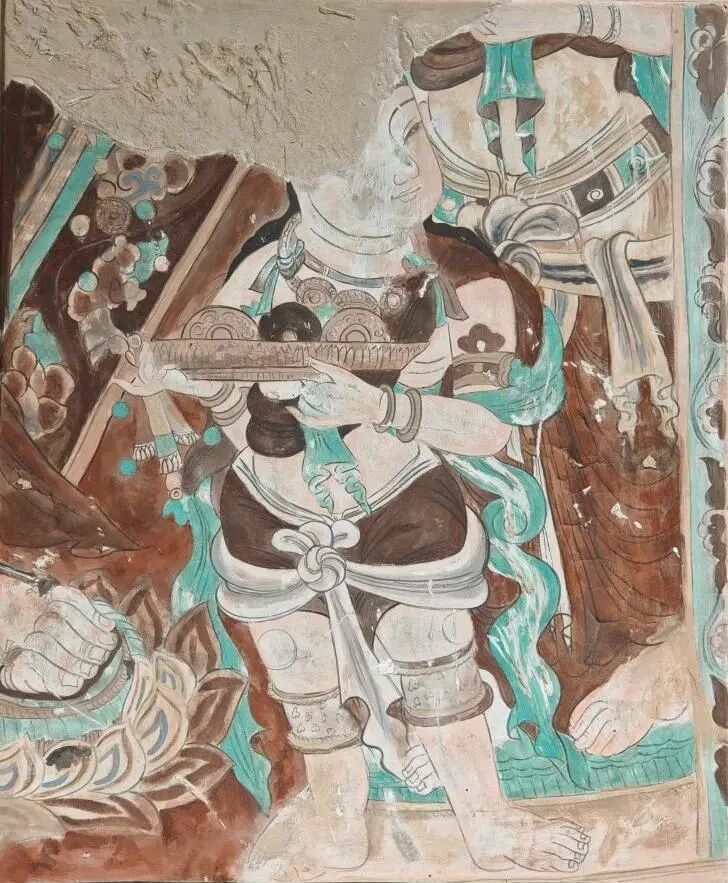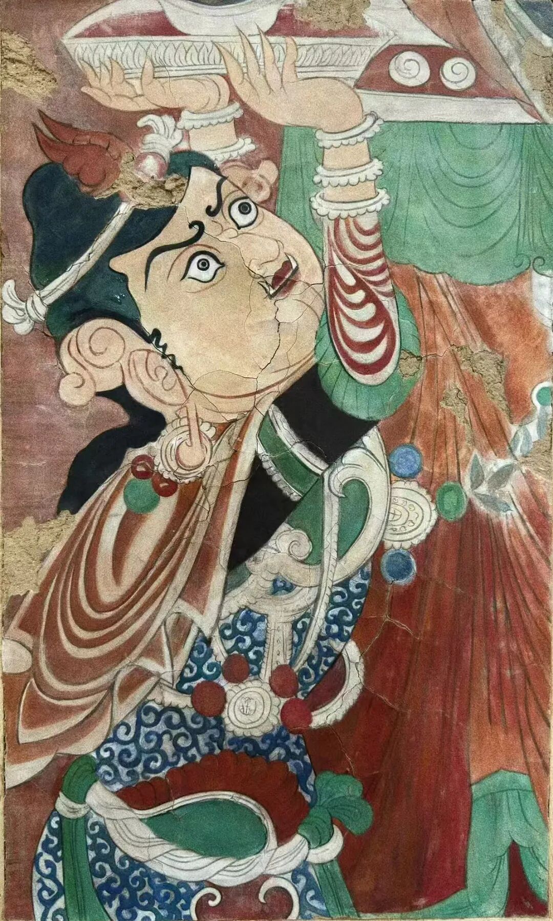 手持畫筆,面對千年古壁的摹本,指尖劃過斑駁的線條,仿佛在與歷史對話。青綠與赭石的交織里,我學(xué)著用礦物顏料的沉淀還原歲月的厚重,在殘缺的紋樣間揣摩古人的筆觸。當(dāng)蓮座的層次隨筆鋒暈染開,菩薩衣袂的褶皺在反復(fù)勾勒中逐漸清晰,我不再是簡單復(fù)刻,而是在殘破里尋回完整的氣韻。這不僅是技法的修習(xí),更是一場跨越時空的共情——每一道龜裂的痕跡、每一處褪色的斑駁,都讓我讀懂了古人對信仰的虔誠,也讓我明白臨摹不是復(fù)制,而是用敬畏之心,讓沉睡的美在當(dāng)代蘇醒。
